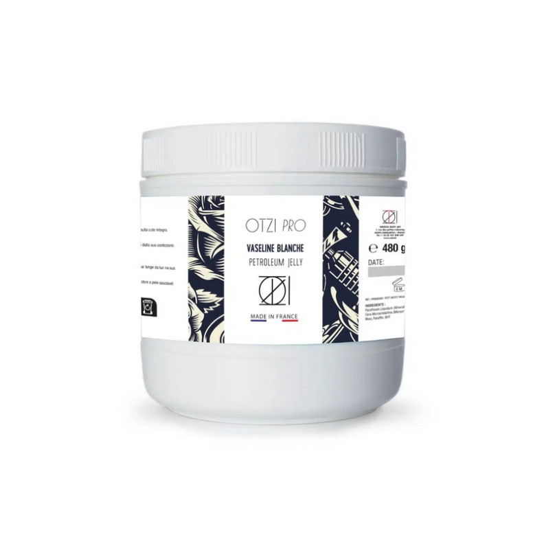 Developed especially for tattooing, OTZI PRO white Vaseline is an ointment to be used during tattooing. In addition to its exceptional qualities, it does not obstruct needle beams.